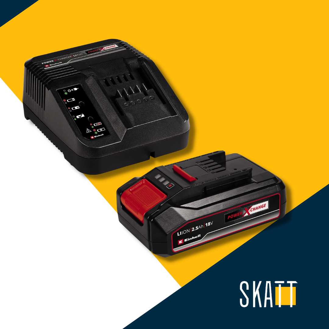 Einhell 18 V 2,5 Ah PXC Starter Kit idealna je osnova za početak ili proširenje Power X-Change obitelji u vašem domu. Starter Kit s 18 V 2,5 Ah Power X-Change punjivom baterijom i brzim punjačem član je višenamjenskog i potpuno izmjenjivog Power X-Change akumulatorskog sistema. Power X-Change punjive baterije mogu se univerzalno koristiti za napajanje i izdržljivost svakog bežičnog alata iz cijele obitelji proizvoda u vrtu i radionici. Punjači iz ovog akumulatorskog sistema mogu se univerzalno koristiti za svaku PXC punjivu bateriju. Prednosti za kupca su očite: Jedna punjiva baterija i jedan punjač za sve alate ne samo da štede značajne troškove kupnje, univerzalna upotreba također pomaže u zaštiti okoliša i pruža fleksibilnost u kući i vrtu. Također uklanja neurednost i kaos u vašoj radionici zbog velikog broja različitih punjivih baterija i punjača za svaki zaseban alat. Visokokvalitetna punjiva baterija odolijeva memorijskom efektu i samopražnjenju koje je obično povezano s baterijama, kako bi konstantno dostavljala mnogo snage. 18 V 2,5 Ah idealna je osnovna punjiva baterija iz Power X-Change obitelji i također je pogodna za TWIN-PACK upotrebu u 36 V alatima i uređajima. ABS – Aktivni sustav upravljanja baterijom ima mikroprocesor za trajno praćenje parametara baterije. Stoga osigurava maksimalnu sigurnost, optimalne performanse alata, maksimalno vrijeme rada i maksimalan životni vijek. Trenutačna razina napunjenosti može se provjeriti na 3-stupanjskom LED zaslonu. Kućište je dizajnirano tako da bude otporno na prašinu, koroziju i mehaničke utjecaje. Postoji zaglavnik koji omogućuje jednostavno uklanjanje baterije iz svakog alata. Brzi punjač za baterije kompaktnog je dizajna i zauzima vrlo malo prostora, a postoje i integrirane ušice za vješanje na zid. Tehnologija punjenja velike brzine pruža kratko vrijeme punjenja, a za optimalno punjenje i maksimalnu sigurnost baterija je trajno nadzirana inteligentnim sustavom upravljanja punjenjem. Postoji funkcija osvježavanja za ponovno aktiviranje baterija koje su se potpuno ispraznile. Sve trenutne informacije daje 6-stupanjski LED indikator razine punjenja.