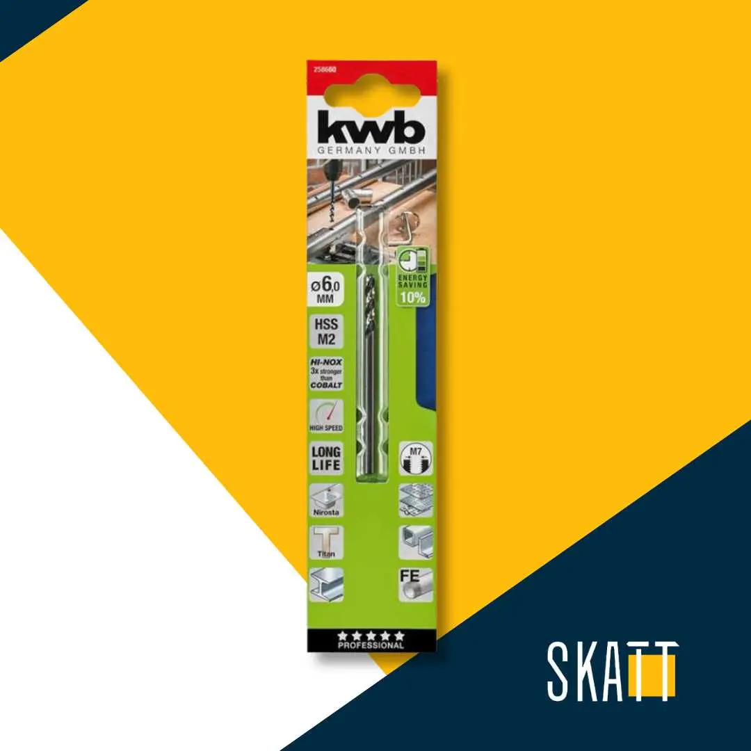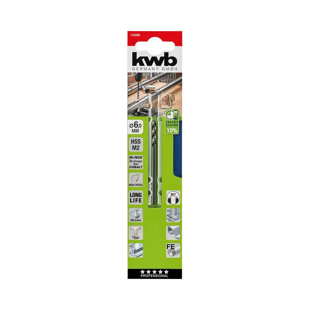 KWB HI-NOX HSS Svrdlo za metal 6 mm je kvadratno brušeno u crnoj boji. Kut oštrice je 130°, a može se pohvaliti posebnim spiralnim dijelom s Quick Cut geometrijom za male otpadne dijelove. Imaju ojačanu jezgru i spiralni rub, a spiralni rez je optimalan za odstranjivanje strugotine i izuzetno otporan na toplinu. Svrdlo osigurava optimalnu učinkovitost rezanja posebno za nehrđajući čelik, ali je također prikladno za sve vrste čelika, lijevano željezo itd.