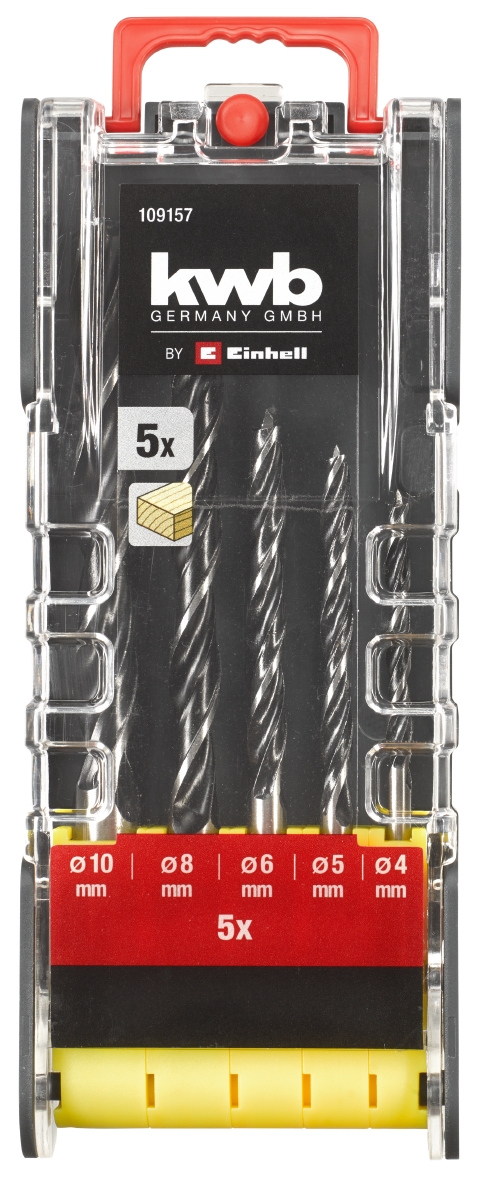 - 5x svrdla za drvo: 10 mm, 8 mm, 6 mm, 5 mm, 4 mm