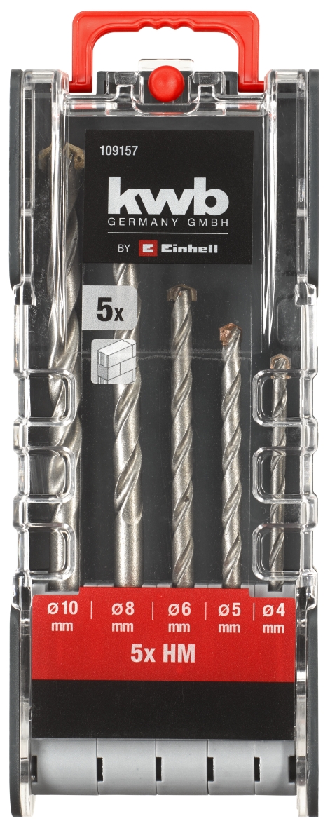 - 5x svrdla za beton: 10 mm, 8 mm, 6 mm, 5 mm, 4 mm